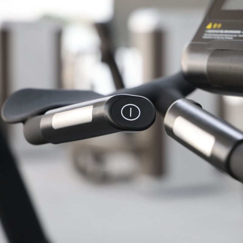 - Имеет центральные и боковые рукоятки и подлокотники, на центральных рукоятках расположены кардиодатчики и кнопки для изменения нагрузки в одно нажатие.