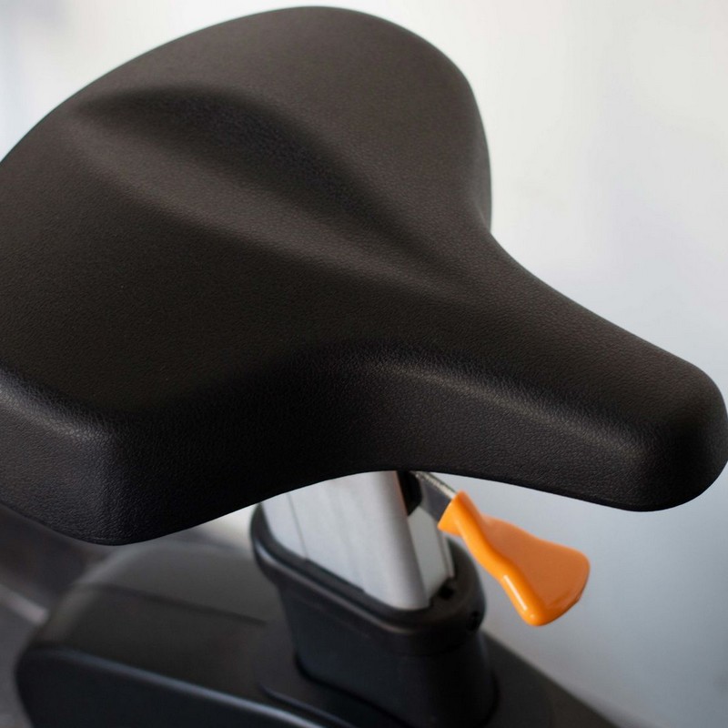 Сиденье тренажера имеет контурную форму и обеспечивает надежную посадку во время тренировок. Высота сиденья регулируется по вертикали с помощью рычага под сиденьем. Настройку можно выполнять, не вставая с тренажера. Регулировка ремешков педалей под стопу пользователя позволяют прочно зафиксировать стопу. Для снижения давления на ноги педали покрыты мягкими резиновыми накладками.
