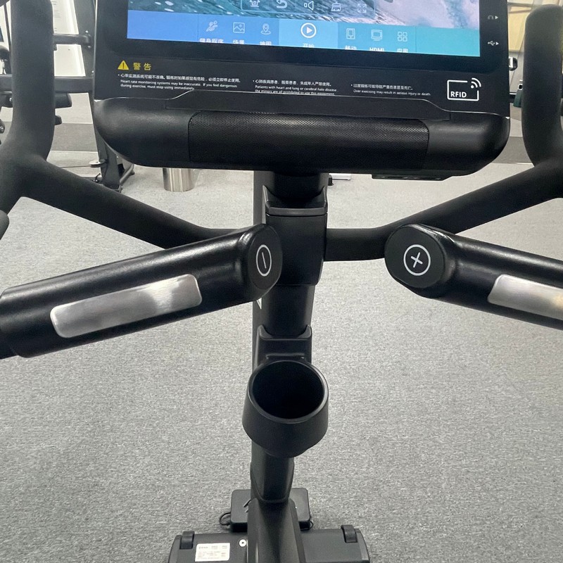 - Имеет центральные и боковые рукоятки, на центральных рукоятках расположены кардиодатчики и кнопки для изменения нагрузки в одно нажатие, боковые рукоятки с мультихватом и полокотниками.