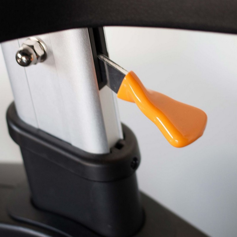 Сиденье тренажера имеет контурную форму и обеспечивает надежную посадку во время тренировок. Высота сиденья регулируется по вертикали с помощью рычага под сиденьем. Настройку можно выполнять, не вставая с тренажера. Регулировка ремешков педалей под стопу пользователя позволяют прочно зафиксировать стопу. Для снижения давления на ноги педали покрыты мягкими резиновыми накладками.